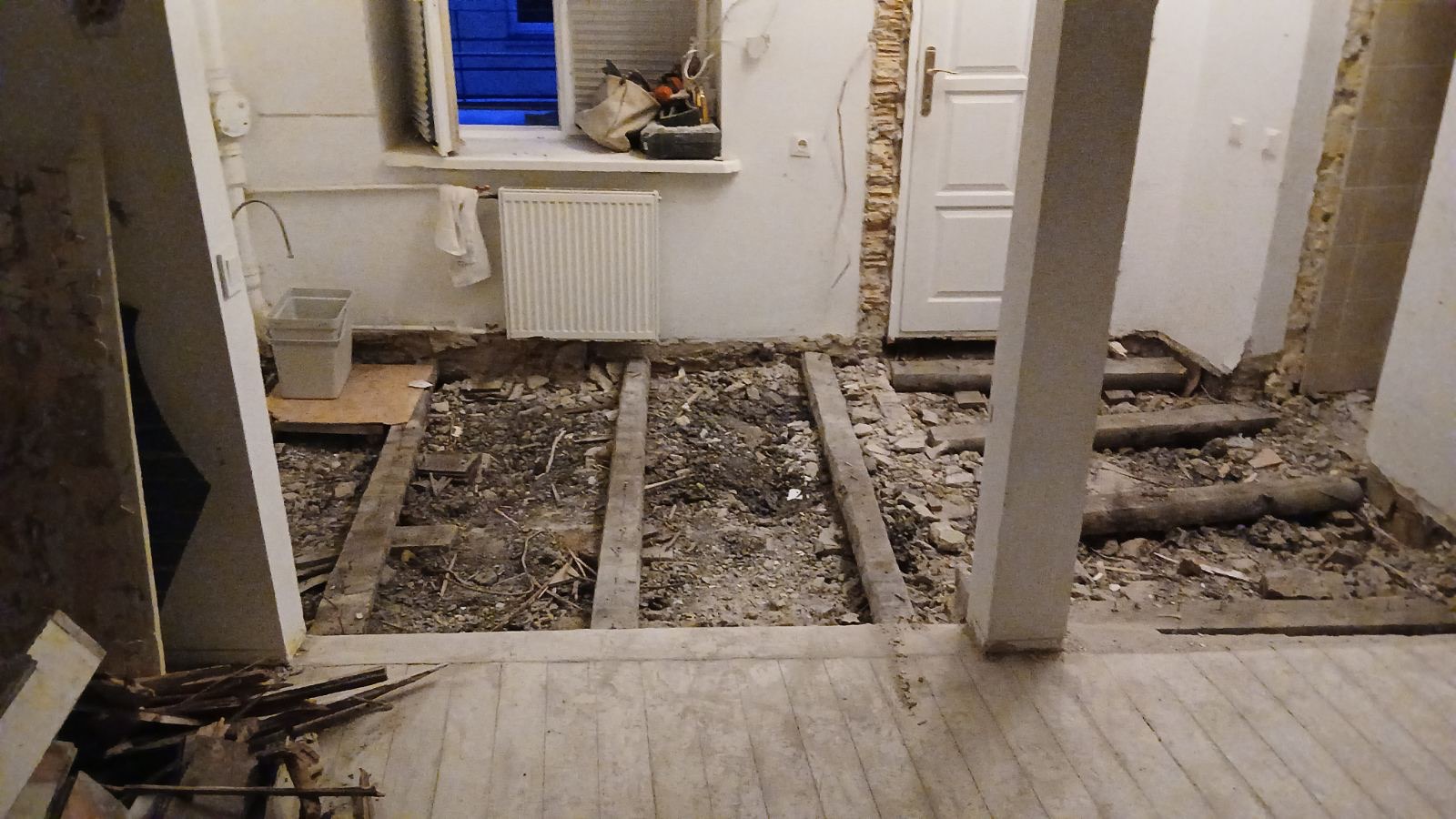 Senų staktų, grindų ir apdailos pašalinimas.