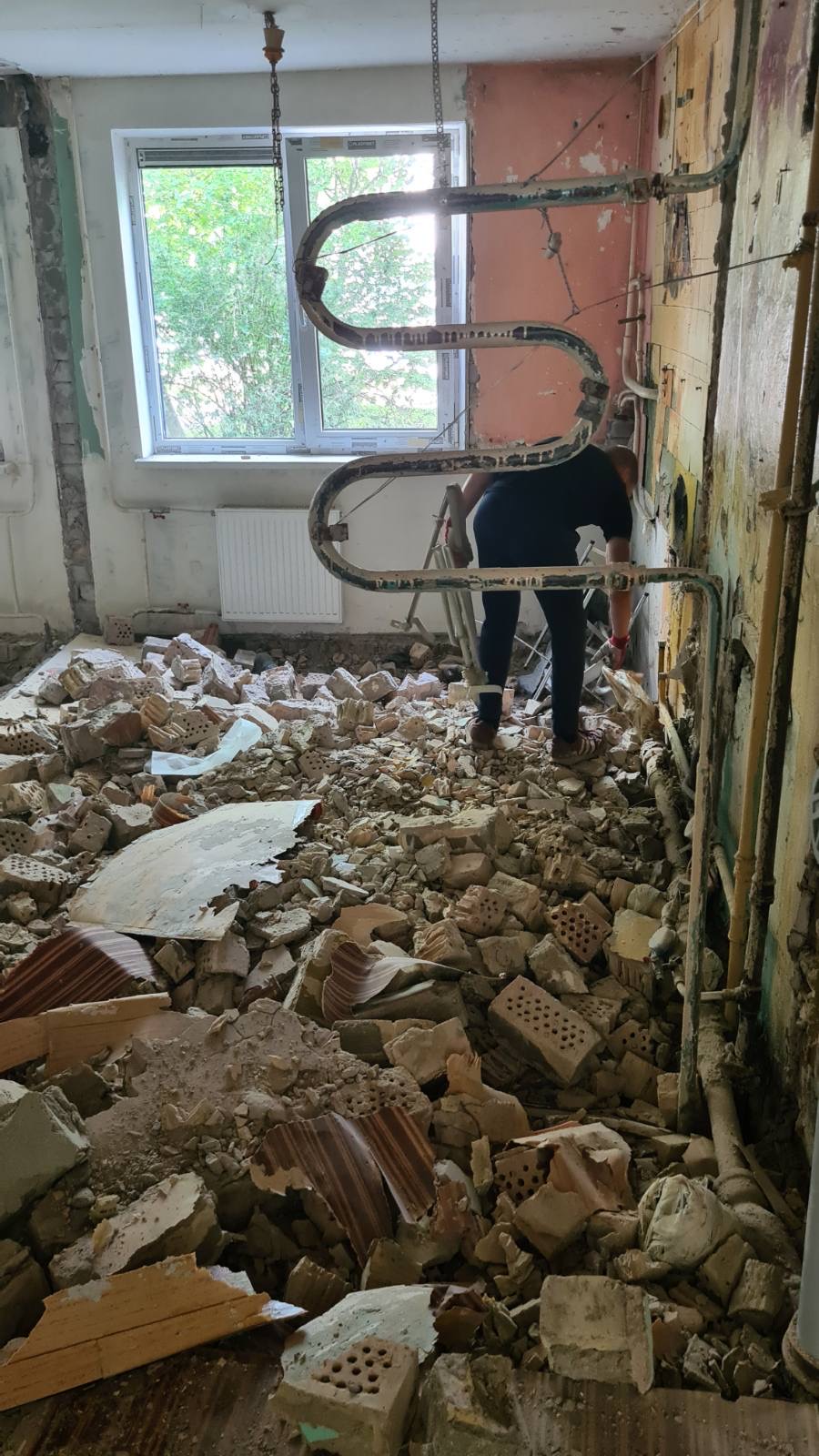 Užtikriname, kad nebūtų pažeisti bendrieji stovai ar kaimynų komunikacijos. Po darbų surinktas metalo laužas ir atliekos paruošiami išvežimui.